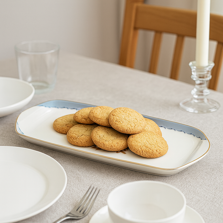 Serve in style with the elegant 10.5" Blue Rose Oblong Platter – MK193. Designed with a timeless blue rose pattern, this ceramic platter adds a touch of sophistication to every dining setup. Its elongated shape makes it perfect for serving snacks, appetizers, sandwiches, desserts, baked items, or side dishes with a beautiful presentation.