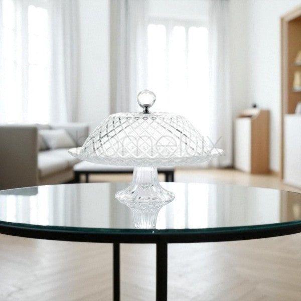An elegant 2-piece glass cake set, perfect for serving and presenting cakes, pastries, and desserts.