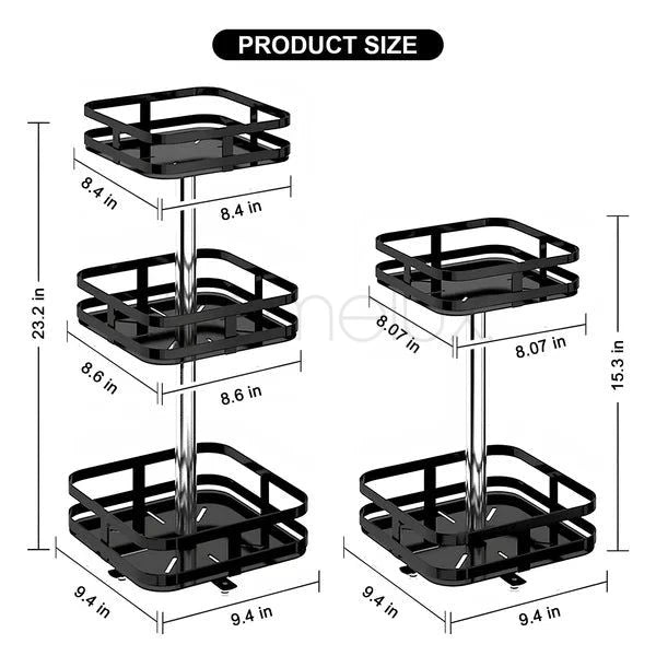 Both tiers of the rotating spice rack are organized with raised edges to prevent any items from slipping off. The two turntables of the lazy rotator rotate 360 degrees smoothly and silently, so no matter how many jars and other items you put on the two tiers of the rotating spice rack, they won't fall off and cause a mess.