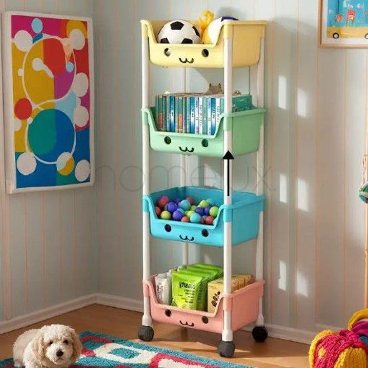 With the children's toy storage racks and shelving pulley rotating bookshelf, you can keep your child's room tidy and stylish. And with its multiple uses and durable material, it's a practical addition to any household. Order yours today and enjoy a clutter-free and organized space for your child to play and grow.