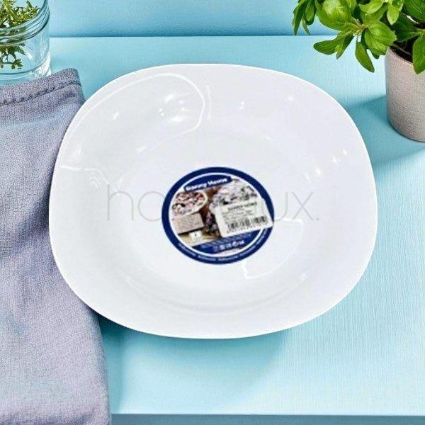This 9.5-inch dinner plate crafted from opal glass offers a durable and elegant solution for everyday dining and special occasions. Its smooth, non-porous surface resists stains and scratches, ensuring long-lasting clarity and hygiene. Suitable for both casual and formal settings, this plate combines functionality with refined aesthetics, making it an essential addition to any tableware collection. Available in sets ranging from 6 to 48 pieces to accommodate various needs.