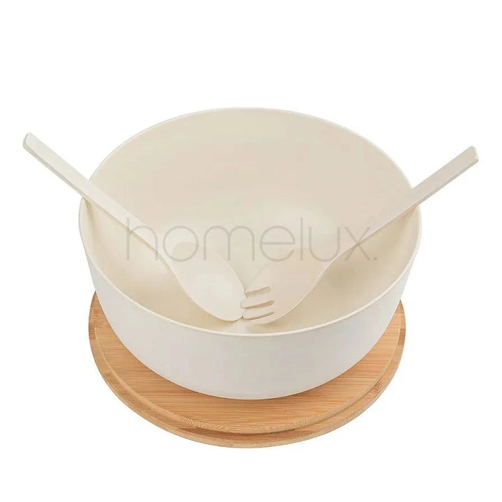 HIGH-QUALITY MATERIAL: Our mixing bowl and utensils are made of natural bamboo powder. The lid is also made of natural bamboo wood, making this product very environmentally friendly. Our serving bowls are 100% Eco-Friendly, biodegradable, and non-toxic, but also very solid, durable, and long-lasting.