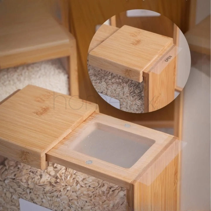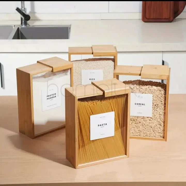 Aesthetic Kitchen Storage Container: The food dispenser uses a unique simple design, which combines the square appearance and bamboo to add beauty and uniqueness to your kitchen space, so that the viewer has a sense of brightness. Moreover, the square kitchen canister fits well your hands, sleek and anti-slip.