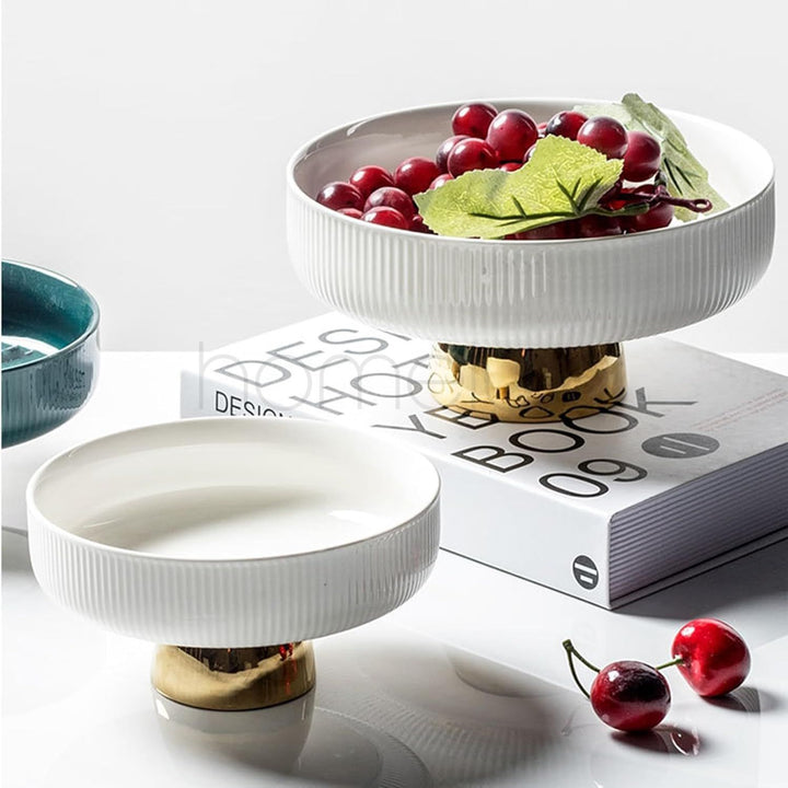 Ceramic Golden Footed Fruit Bowl - 10 Inch