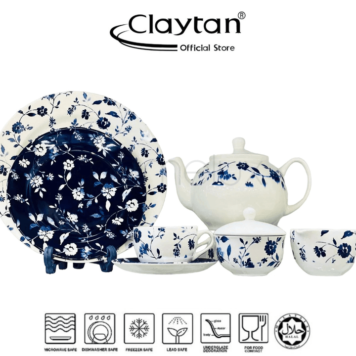 Claytan Crystal Blue (+VE) All Over 24 Pcs Tea Set