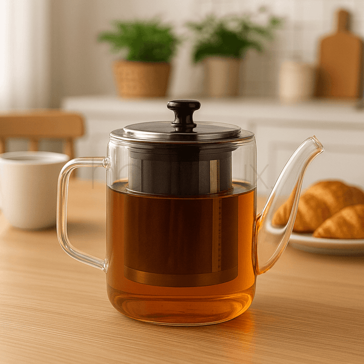 A sleek and stylish addition to any tea lover's collection, this teapot features a clean, straight-sided, cylindrical body for a modern minimalist look. Constructed from premium borosilicate glass, it is designed to withstand temperature extremes, making it perfect for brewing both hot and iced teas.