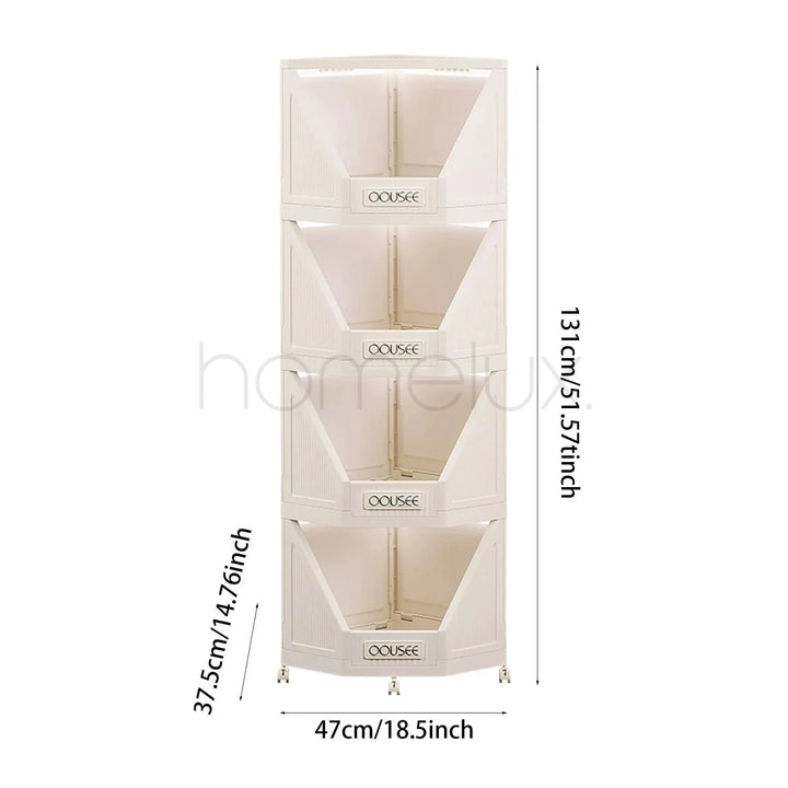 [Convenient Mobility]: This three and four layer Corner Storage Cabinet is designed for easy movement, making it a great addition to your bedroom or living room.