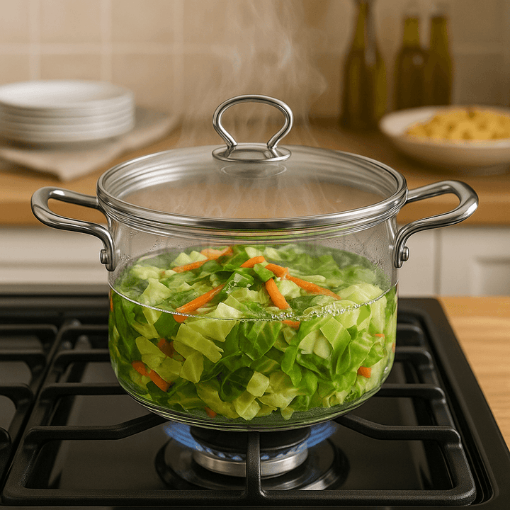 Experience a new way of cooking with the Luminosity Cookpot. Its transparent, heat-resistant glass body lets you watch your meals come to life, helping you achieve perfect results every time. This sleek pot features a modern design with a clear glass lid and durable stainless steel handles, making it a beautiful and functional addition to any kitchen. Perfect for everything from boiling pasta to simmering sauces, it allows for effortless cooking and elegant serving.
