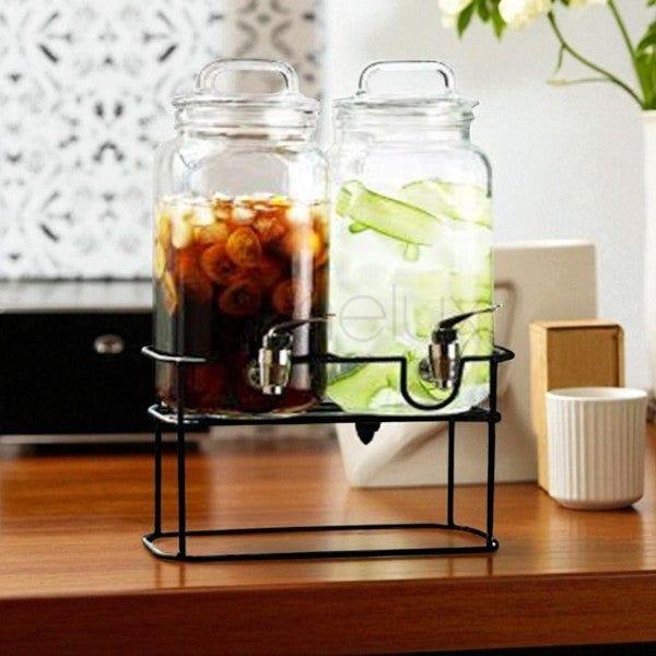 A versatile 3-piece glass dispenser set (2300ml total capacity), perfect for serving drinks in style at home, parties, or events.