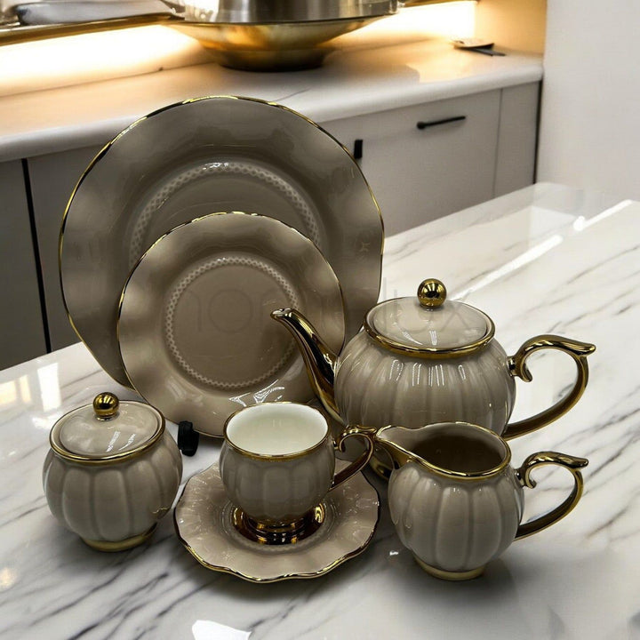 Elegant 24Pcs Bone China Tea Set - 2265 Cappuccino