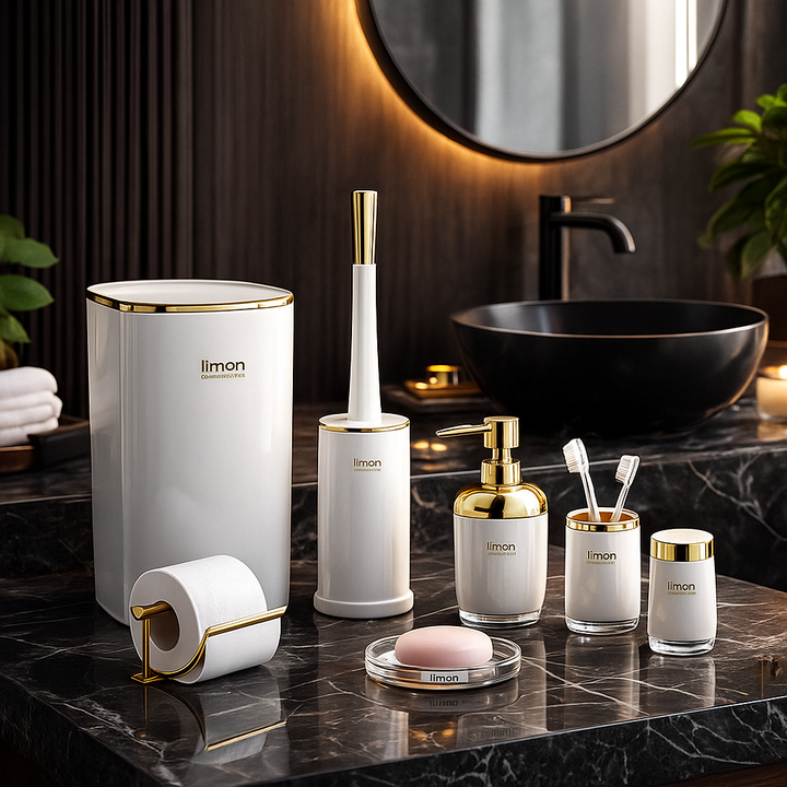 Transform your bathroom into a sanctuary of style and organization with the Limon Classic 6 Pcs Bathroom Set. This elegant collection provides all the essential accessories to complete your space, blending timeless design with everyday functionality. Each piece is crafted to bring a cohesive and sophisticated look to your bathroom, ensuring both hygiene and aesthetic appeal.