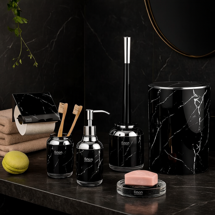 Elevate your bathroom décor with the Elegant Marble 6-Piece Bathroom Set (2024) by Limon. Featuring a chic marble design and a 5.5-liter flip-lid dustbin, this set combines style and practicality. Perfect for master or guest bathrooms, it keeps your space organized, elegant, and easy to maintain.