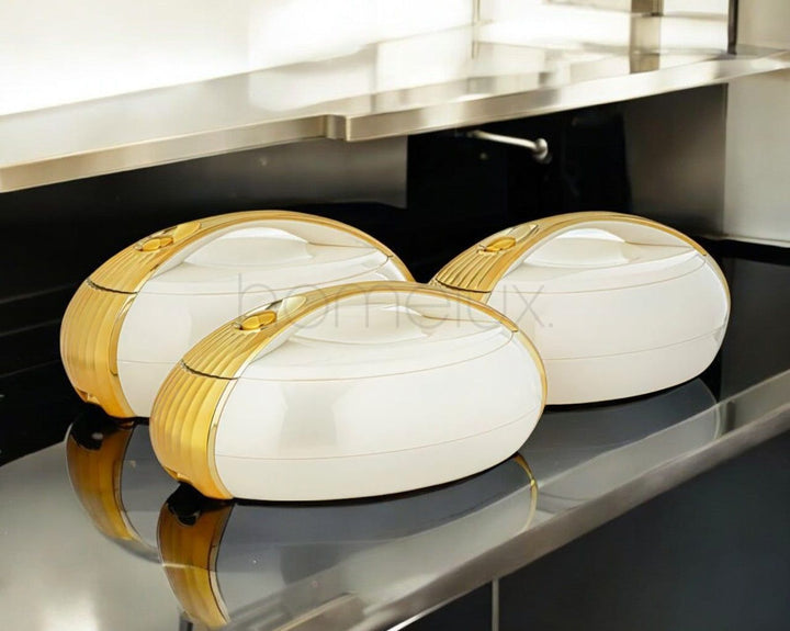 Forever Gold 3 Pieces Hot Pot Set Pearl White & Gold - ZFA