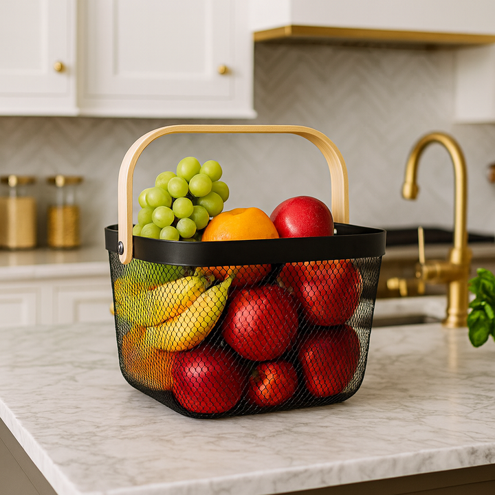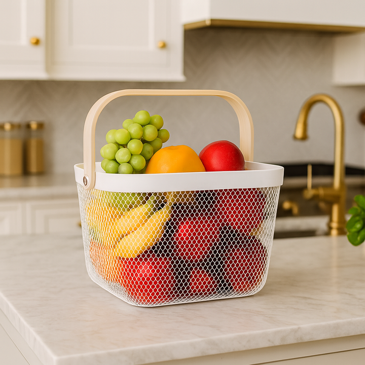 Quality Made: Durable and built to last, each mesh basket is made with metal wire and includes a wooden handle, ensuring your produce is safe while it's stored