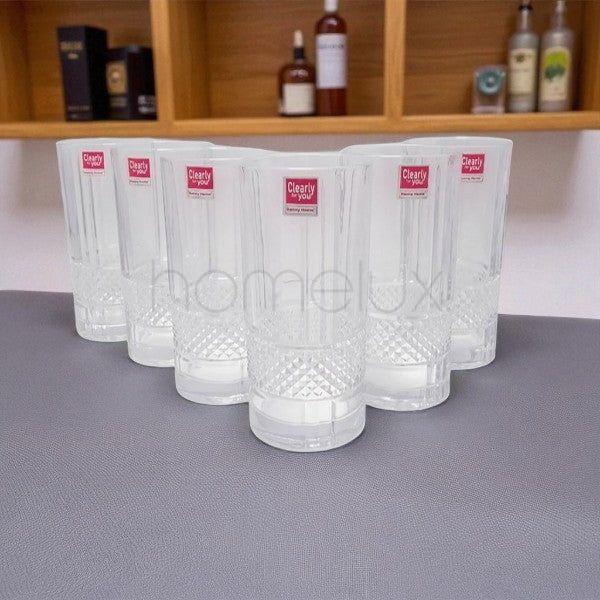 This 6-piece glass set, each holding 330ml, combines practical design with durability, making it an ideal choice for everyday use. Crafted for versatility, these glasses suit a variety of beverages, while their sturdy build ensures longevity. Perfect for both casual and formal settings, this set offers a reliable solution for your drinkware needs.