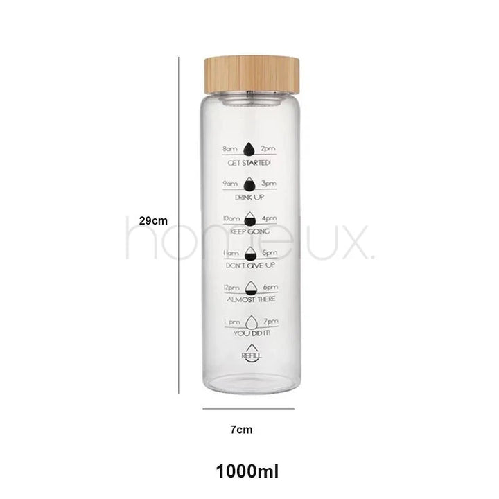 šĀ Stay Hydrated Smartly!Ā š¦ Introducing our 1000ml Large Capacity Glass Water Bottle, designed to keep you on track with your hydration goals. With a convenient time marker and a stylish transparent cover, this bottle is perfect for water, milk, juice, and any other beverage you enjoy. Itās not just a water bottle; itās a daily hydration companion and a great birthday gift!