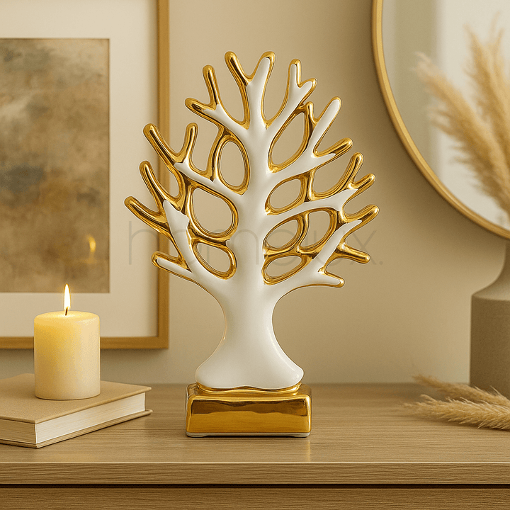The Golden Tree of Elegance Décor is a stunning artistic piece symbolizing growth, strength, and luxury. Crafted in glossy white ceramic with golden branch accents, this unique tree-shaped sculpture brings a touch of sophistication and harmony to any living space. Its abstract branching design makes it a versatile centerpiece, perfect for modern or classic interiors.