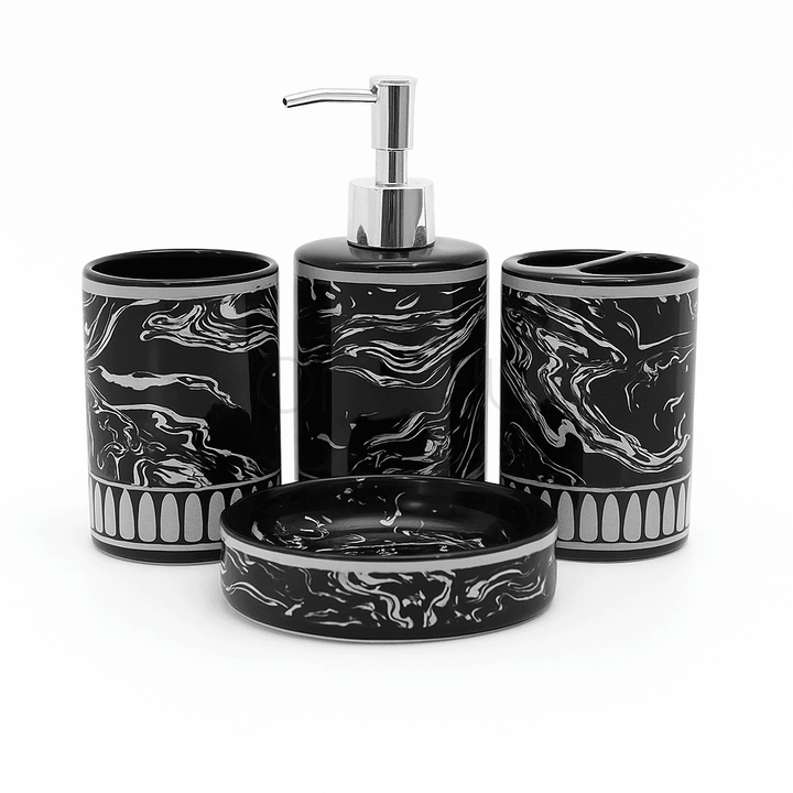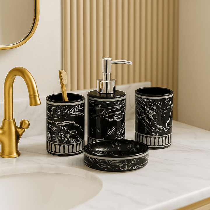 Luxury Black and White Marble-Effect 4-Piece Bath Accessory Set