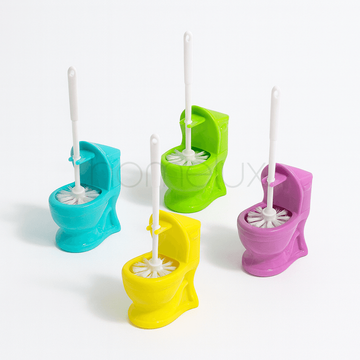 A sleek, standalone toilet brush and holder set featuring a minimalist cylindrical design. The non-porous plastic holder and handle are finished in a subtle colors, offering a fresh, contemporary look for any bathroom. The brush features durable, densely packed bristles for effective cleaning and tucks neatly into the closed base, ensuring sanitary storage and discreet placement next to the toilet.