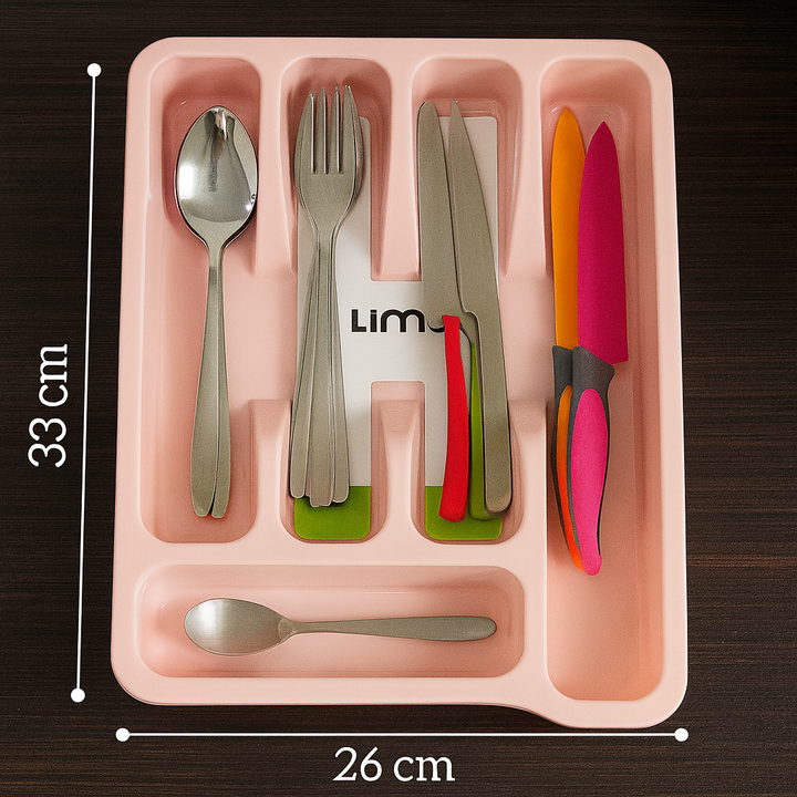 Keep your kitchen drawers tidy and your utensils organized with the Multi-Compartment Cutlery Tray by Limon. Designed with multiple spacious sections, this tray helps you neatly separate knives, forks, spoons, and other tools for quick access. Its durable plastic construction and sleek design make it both practical and stylish — an ideal solution for any modern kitchen.