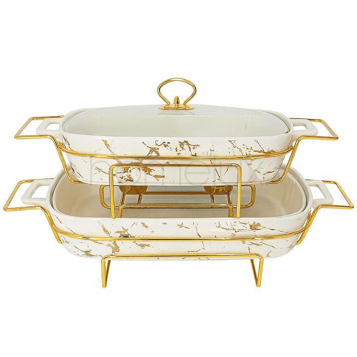 This 14.5-inch and 16.5-inch porcelain rectangle burning dishes offers a durable and elegant solution for your culinary needs. Crafted from high-quality porcelain, it ensures even heat distribution and resistance to thermal shock, making it ideal for baking, roasting, and serving. Its sleek rectangular design provides ample space for a variety of dishes while adding a refined touch to your table setting. Perfect for both professional kitchens and home use, this dish combines functionality with sophisticated style.