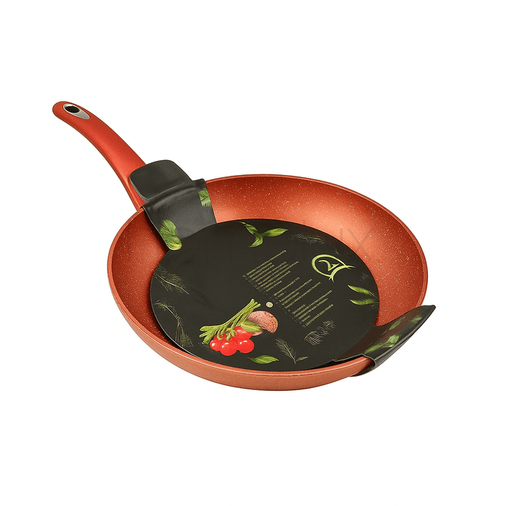 Your new favorite pan for everyday cooking. This frying pan features a seamless, smooth copper-tone exterior and a durable, speckled non-stick interior that guarantees food will slide right off—perfect for eggs, pancakes, or stir-frying. The long, ergonomic, stay-cool handle makes tossing ingredients and maneuvering the pan safe and comfortable.