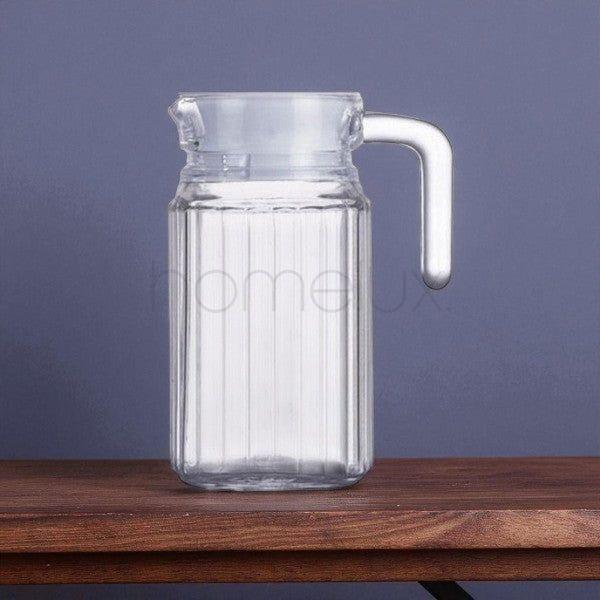 A sleek 1000ml glass water jug, perfect for serving beverages with style and convenience.